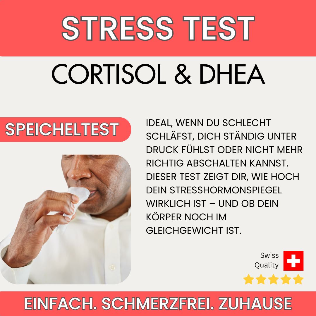 Cortisol wird bei Stress ausgeschüttet und versetzt den Körper in Alarmbereitschaft. DHEA wirkt dem entgegen – als eine Art inneres Gegengewicht. Gerät dieses Verhältnis aus dem Lot, zeigt sich das oft durch Erschöpfung, Schlafstörungen oder emotionale Instabilität. Der Test analysiert beide Hormone und zeigt dir, wie ausgeglichen dein System wirklich ist.