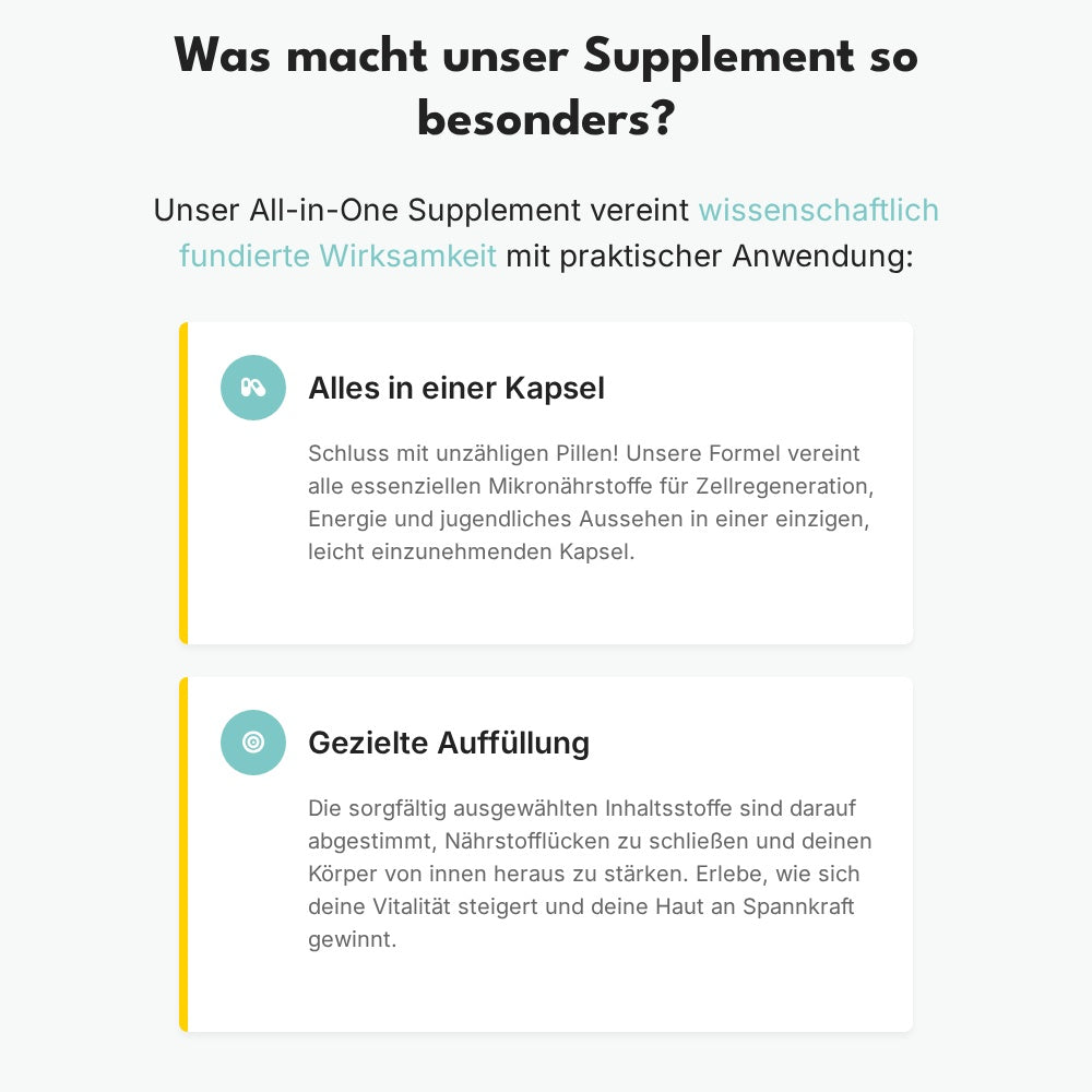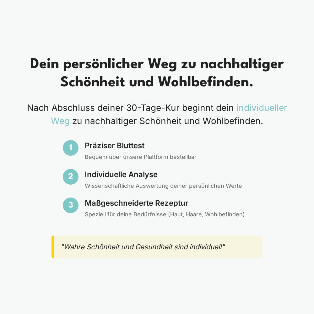 Wir haben deine einzigartige Formel sorgfältig gespeichert, sodass wir sie jederzeit schnell und unkompliziert für dich nachproduzieren können. Das Beste daran: Mit unserer wiederkehrenden Lieferung erhältst du dein personalisiertes Supplement regelmäßig und direkt an deine Haustür geliefert – ganz ohne Stress und ohne dass du daran denken musst, es nachzubestellen.